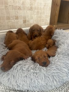 Our Beautiful F1 Mini Labradoodle puppies have reached week 5 and are finding their individual personalties, becoming playful, loving the weening and an all round joy to have around. We’ll be up to lots with them in the coming weeks. I’ll update some pictures of them below along with all the details about the puppies and their parents.